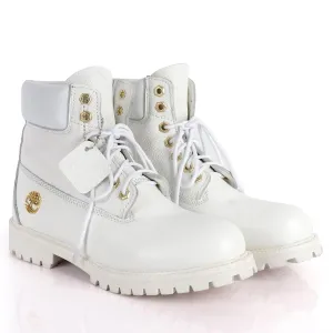 Tim Waterproof Premium Men's Leather Gold Logo Boots 6 Inch - White